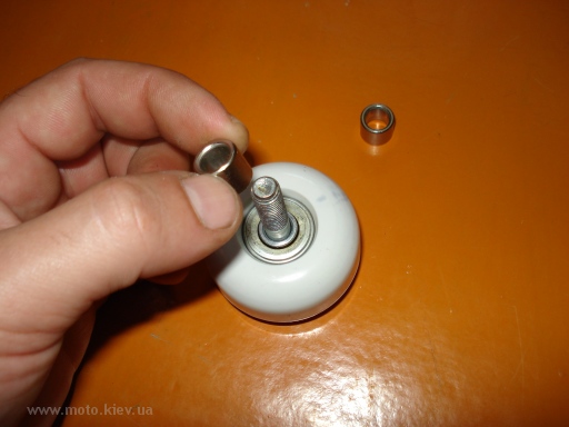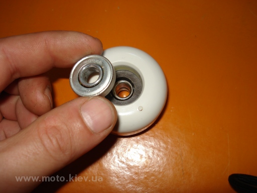 Переставил подшипник из одного ролика в другой,чтоб получить два подшипника в одном ролике.
